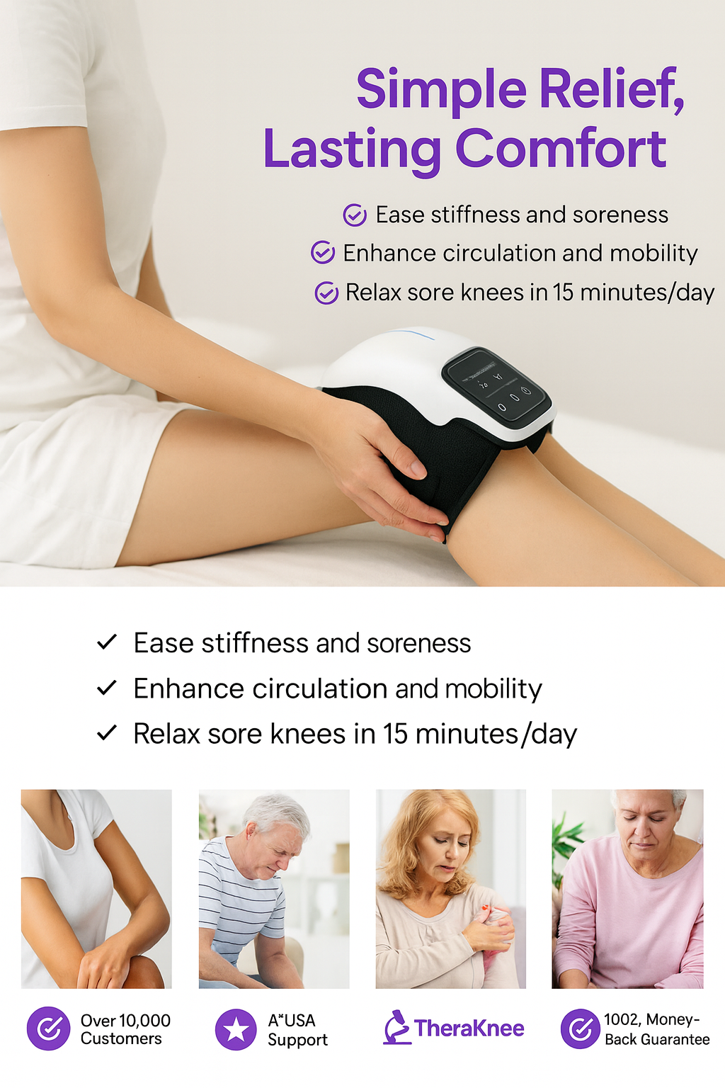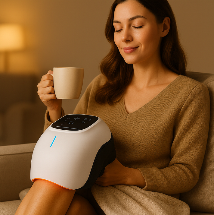 Engineered with advanced heating and vibration technology, TheraKnee™ delivers powerful knee relief in just 15 minutes a day. Its sleek, cordless design brings clinic-level recovery to the comfort of your home—helping you move freely, recover faster, and stay ahead every day. Experience smarter recovery, beautifully simplified.